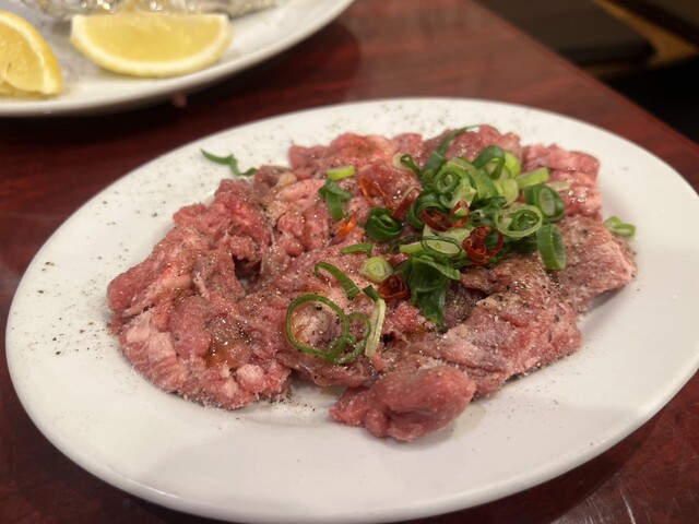 先日の感動、冷めやらぬまま、今度は妻と再訪。小麦アレルギーあるので、タレなしで上ハラミ、さらに上タンなどの肉と、えのきのバターホイル焼き、ナムルも注文。質の高いタンとハラミを妻も喜んで、大満足。最後に、テグタンスープと上ロース(半人前)を追加。店長さん?シェフの方は優しく質問に答えてくれたが、女性店員さんはあまりこちらに耳を傾けず、少し威圧的なのが残念でした。