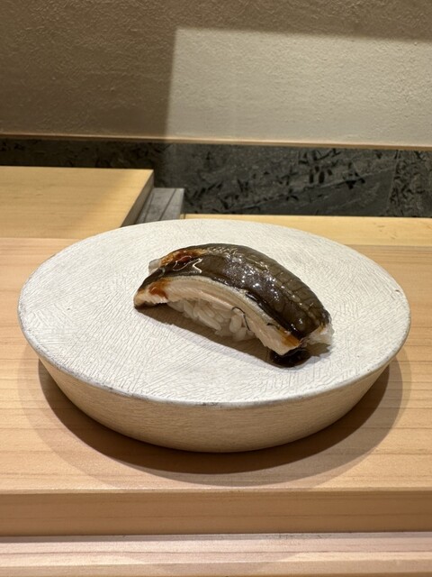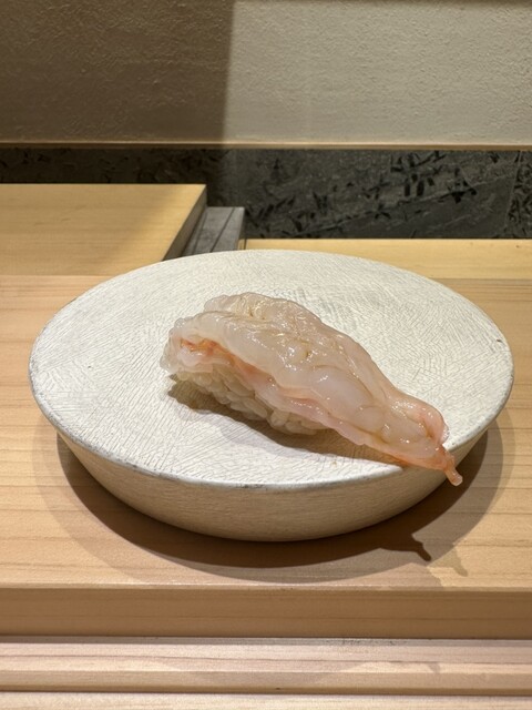シャリは赤酢ベース、酸味も心地よい感じで程よい大きさ、ほぐれ具合よくもネタとのバランスも好み。お酒飲みにも合う感じ。この日はカマスが最高。ボタンエビの食感と風味、鮑の肝ソースの深みと香り。ひとつひとつ少しずつ何かしら工夫されているようで、それが何かわからないけどホント美味しい。ガリもまたいい味ですw