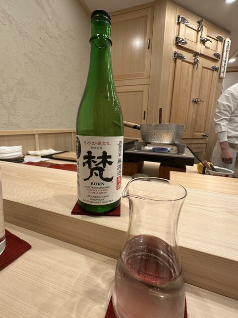 最初に嬉しいサプライズ。シャンパーニュ(ルイ・ロデレール コレクション)がサービス。前の会のお客さんのペアリング残りを出していただきました。グイッといって日本酒へ。
