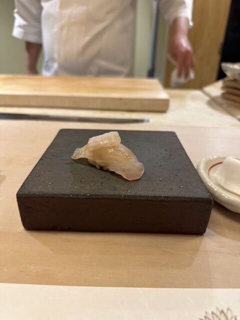 最初はビールで乾杯。前菜からお酒が進みますね。すぐに日本酒へw まずは熟成魚から、小肌は柔らかく甘く香りが立った感じ。ヒラメは昆布の風味とエンガワの脂が駆け引き、おもしろい。