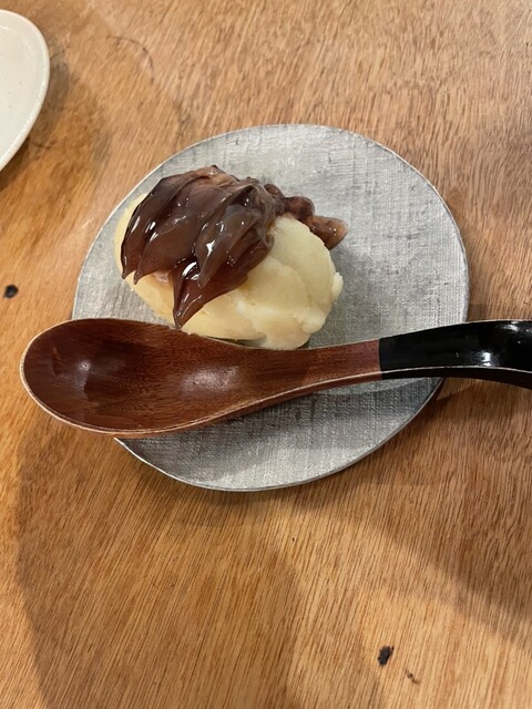 鴨メンチカツはそのままでも美味しいけど、バルサミコ酢ともろみ味噌が混ざったソースで食べるのがオススメ✨
