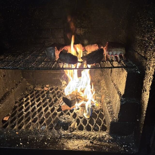 薪で焼いたお肉は絶品です。