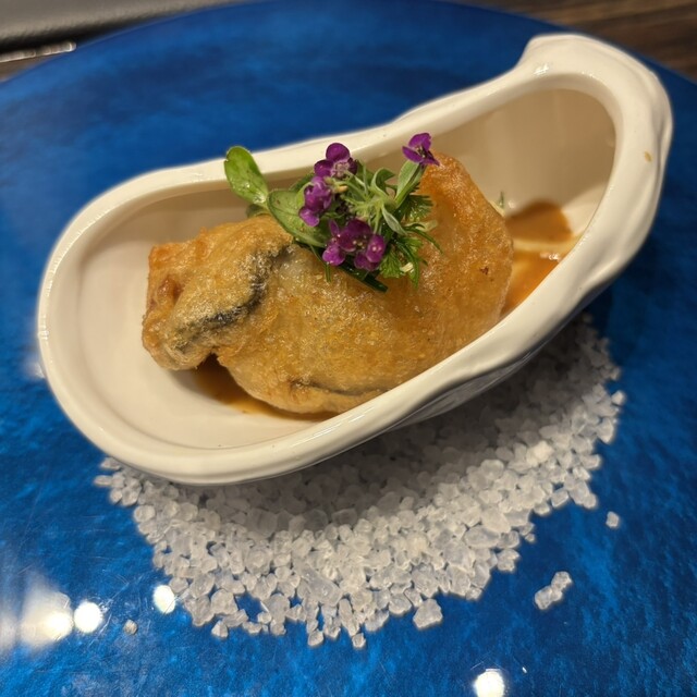 牡蠣のベニエは衣もソースも本当に美味しく、