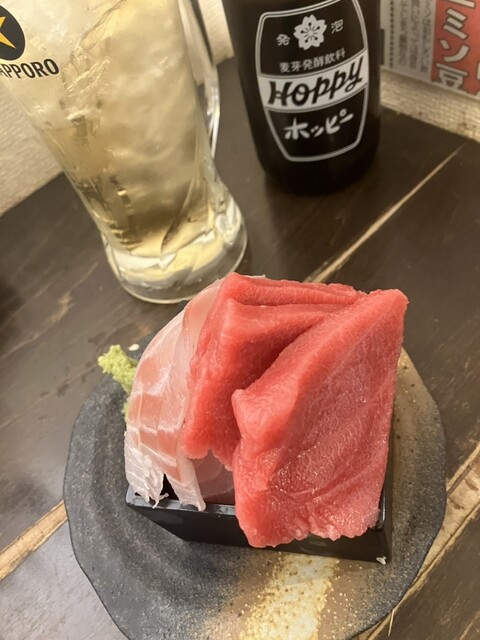 いやーわかりにくいところにあるんですよね。少し穴場感がありますね。店内は立ち飲みで、1人では入りにくい雰囲気なのですが。。。いやー、ここなかなか美味しい。刺身とアジフライが美味しかった。というかそれしか頼まなかったけど、いや、それだけで満足してしまった。多分ですが、ここ漁師さんから直接仕入れてるんじゃないのかなぁ?しかもかなりの目利きがいるのかと思いました。ここは、日本酒ですね。刺身と日本酒。それしかない。内緒にしたいお店です。。。