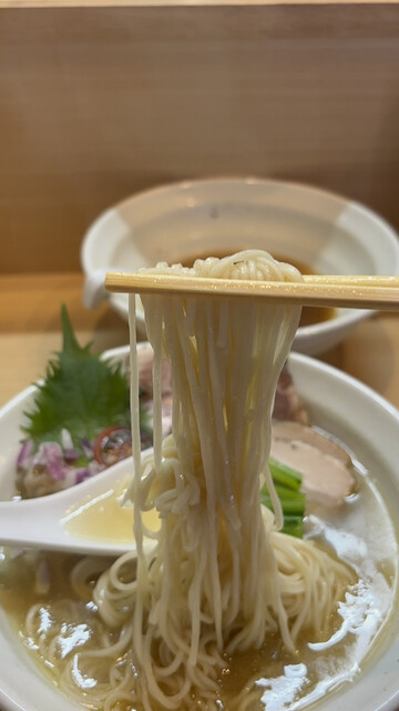 塩は、初速はかなり大人しめの味わいかと思いきや、間もなく貝の旨みがどっと押し寄せます。これを食べ進めるにつれて、貝出汁だけこだわっても出せないであろう複層的な味わいに変化していきました。イワシなどの煮干しの効果かもしれません。