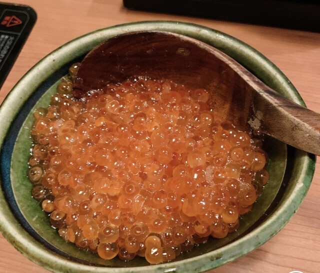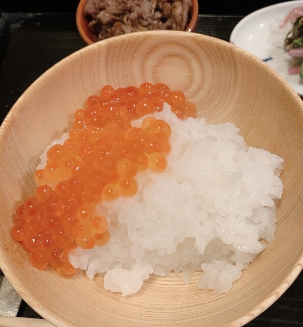ご飯には、あっさり味付けのイクラ醤油漬けをたっぷりとのせて。