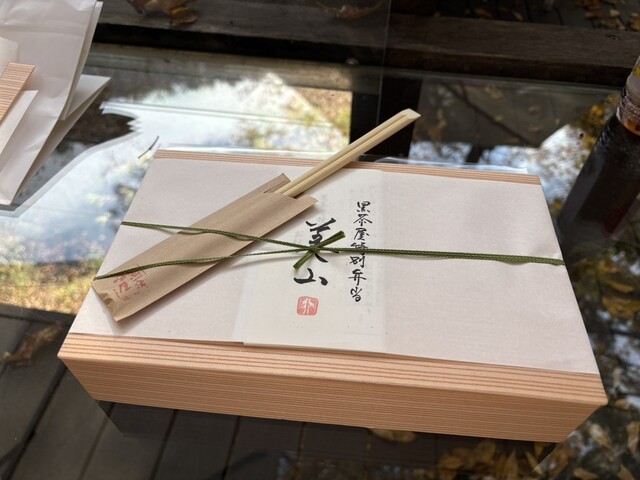 秋川渓谷へ紅葉を見に行った際、以前からインスタで話題になっていて気になっていた黒茶屋さんへ。敷地内のカフェ「糸屋」で、今回はお弁当のテイクアウトを利用しました。
