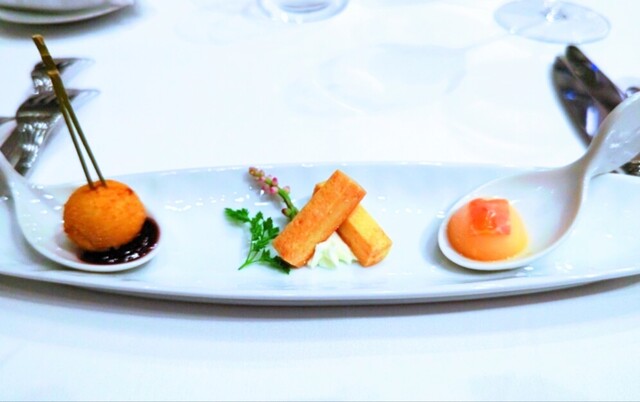 大阪・中之島にある高級フレンチレストランで店内は落ち着いた雰囲気で、窓からの景色は都会的ながら...