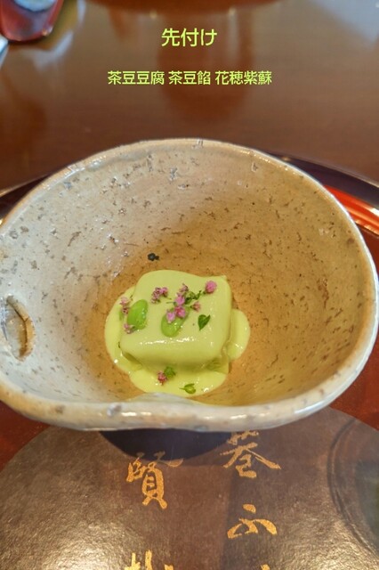 先付 茶豆豆腐 茶豆餡 花穗紫蘇
