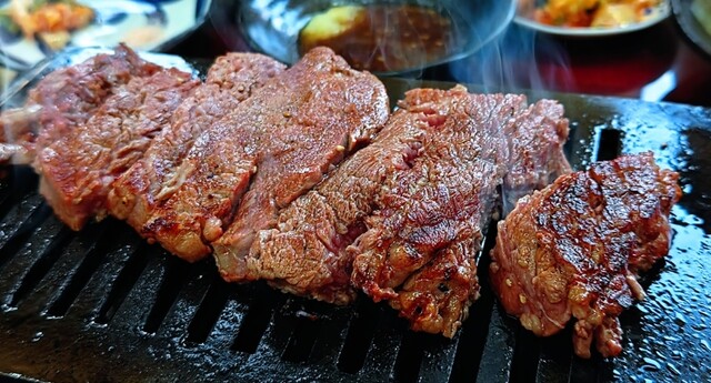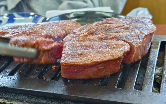 店内は落ち着いた雰囲気で、店主が目の前で肉を焼き上げ最適な状態で提供してくれる。厳選された黒毛和牛の雌牛のみのシャトーブリアンは、口の中でとろけるような柔らかさ。肉は400gの厚切りで部位によりA(税込20,000円)、B(税込15,000円)、C(税込12,000)として提供されてる。この価格はドリンク、ご飯おかわり、キャベツも含んだオールインクルーシブ。フォークで分けられるほどの柔らかさで噛む必要がないほど。上質な脂の甘みと赤身の濃厚な味わい、まるでバターのように滑らかな舌触り、大変美味しくいただきました♪