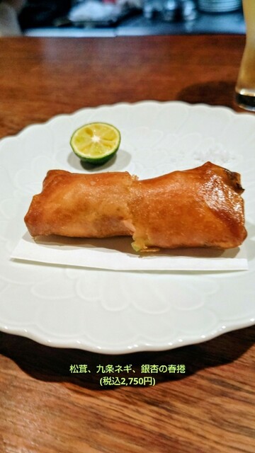 『国産松茸、九条ネギ、銀杏の春捲』(税込6,050円)