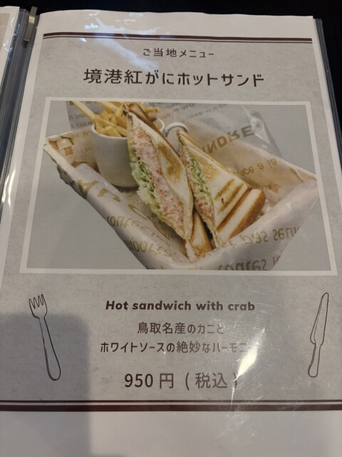 冬季限定鳥取県境港産(鬼太郎のところ)のカニホットサンドでまったりしました♪ 店内も静かで落ち着けますね、ありがとうございました。
