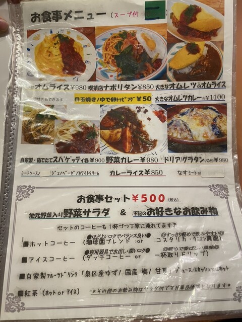 半熟オムライス980円+セット400円(メニューには500円になっていたけれど、400円と店員さんが口頭で教えてくれました)