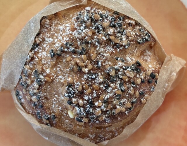 家で食べたら、クリームが濃厚でかなり美味しい。表面についているゴマが良いアクセントになっている。今まで食べたシュークリームの中でベストだと思った。