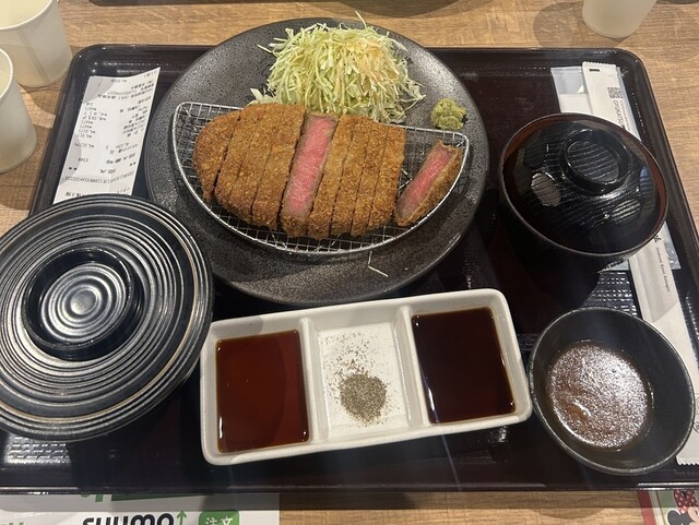 揚げたてサクサクの牛カツを気軽に楽しめる満足度の高いお店です。レアに仕上がった柔らかい牛肉はジューシーで、噛むほどに旨味が広がります。特製ソースやわさび醤油など、多彩な味変ができるのも魅力で、最後まで...