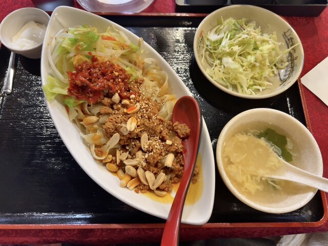 味は挽肉がゴロゴロで香ばしいけど、個人的に旨みがもっとほしかった。辛さは大辛にしてそこそこ、若干物足りないくらい。卓上に赤くて辛い油と、黒くて香ばしい油があり、前者を足すと味も辛味も強くなって好みの味になった。痺れは全く感じない。
