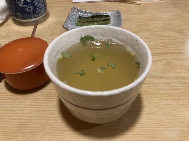 注文してすぐに漬物到着、5分ほどで鳥スープと定食のご飯が到着。ご飯は炊き立てで固め、かなり好みの硬さ。
