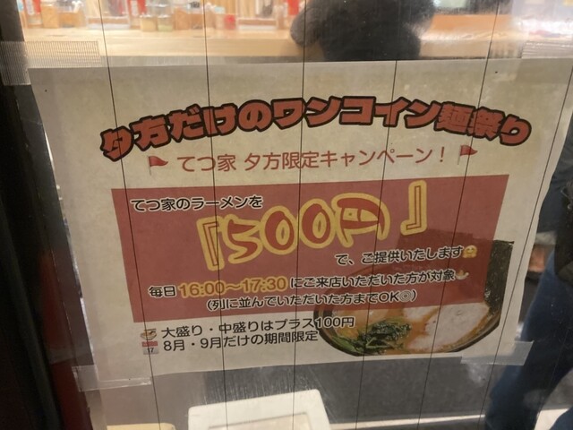 「夕方だけのワンコイン麺祭り」ラーメン500円!