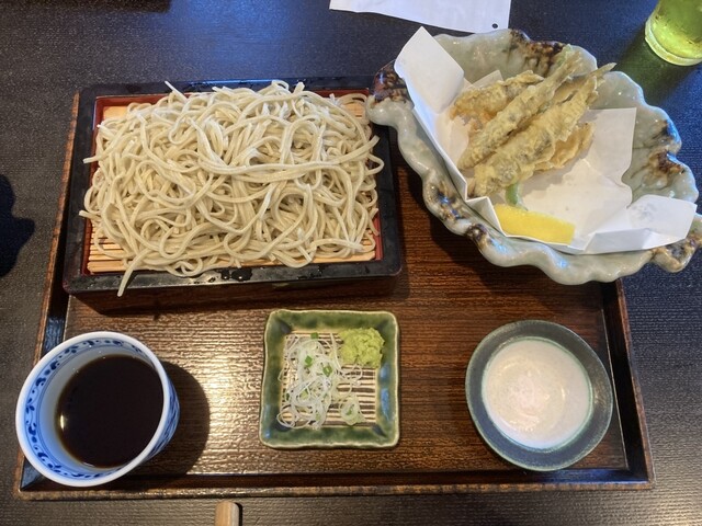 私はそれほど蕎麦好きではないもので、いつもは決まってかしわせいろを頼むのですが、今日は季節の料理で「稚鮎天せいろ」が前面に押し出されてました‥