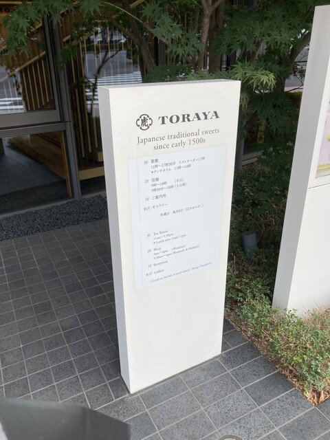 「とらやは、明治2年(1869)東京遷都の折、京都の店はそのままに東京にも出店。明治12年(1879)より赤坂の地に店を構え、昭和39年(1964)、赤坂店は現在の場所に至りました。平成30年(2018)には、売場、菓寮(喫茶)、ギャラリー、御用場(製造場)から成る低層の建物に改築し、ゆったりと菓子をお楽しみいただける店となりました。」