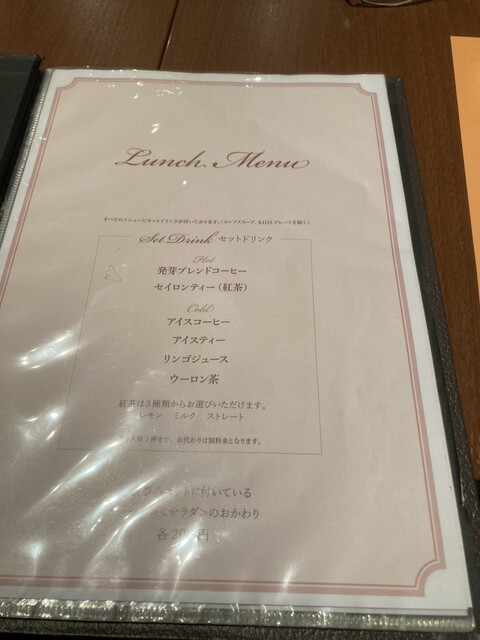 発芽コーヒー、セイロンティー(紅茶)、アイスコーヒー、アイスティー、リンゴジュース、ウーロン茶から選べます。