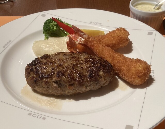 ハンバーグステーキ(140g)&エビフライ2200円を注文。