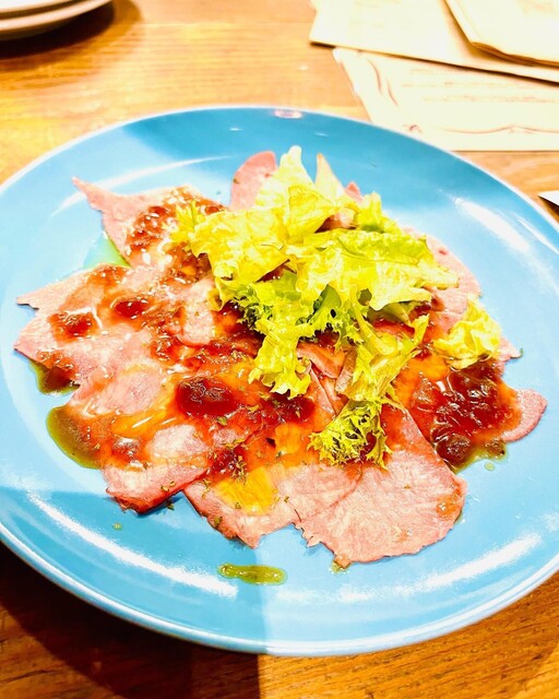 ・牛タンのカルパッチョ 玉ねぎソースで/1408円
