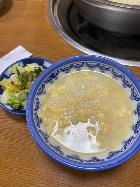 最初から白濁しているスープにお肉や野菜を入れて食べ、最後はそのスープをすべて染み込ませたおじやへ。