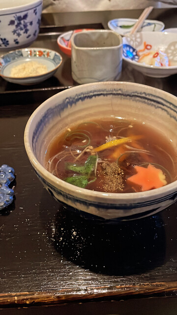 そばがきもまた格別で、箸で持ち上げるたびにふわりと立ちのぼる香りにほっと一息。そして思わず歓喜したのが「鰊漬け」。まさかこんな場所で、大好きなあの味に出会えるとは…しかも、過去イチかもしれない美味しさでした。