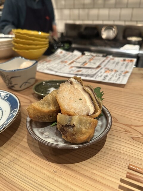 エビムース椎茸の天ぷらは、椎茸のジューシーさがたまらん、、