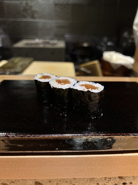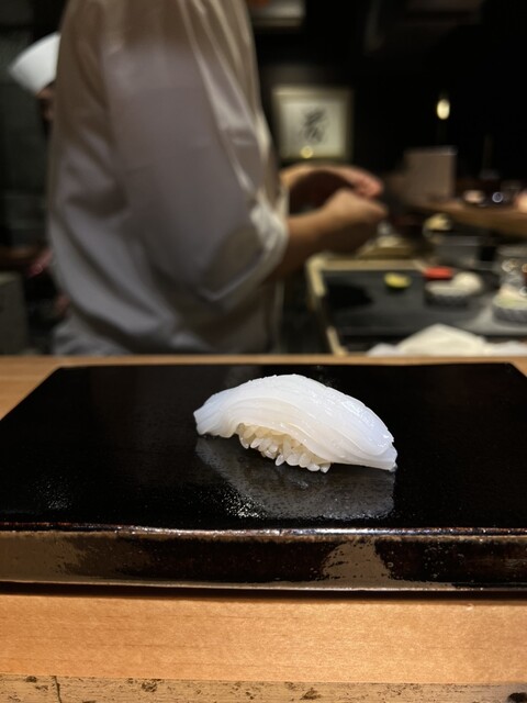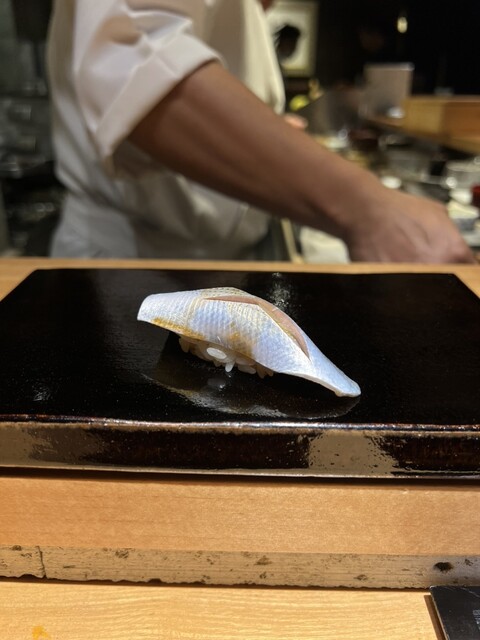 恵比寿に佇む隠れ家的な鮨屋。丁寧で洗練された一皿と握りを楽しめる。やや硬めに炊かれたシャリで赤酢を感じるが個性的な印象というよりは万人受け。テンポ感は早くないが待ちは長く感じない。個人的には酒器が非常に可愛らしく毎回違うのも非常に楽しい。たまたまだと思いますが前回来店した際と酒器が被らない程、バリエーション豊かで私は嬉しい。全体的に塩味は控えめで素材を楽しめる、そして酒の甘みを引き立てるような味わい。