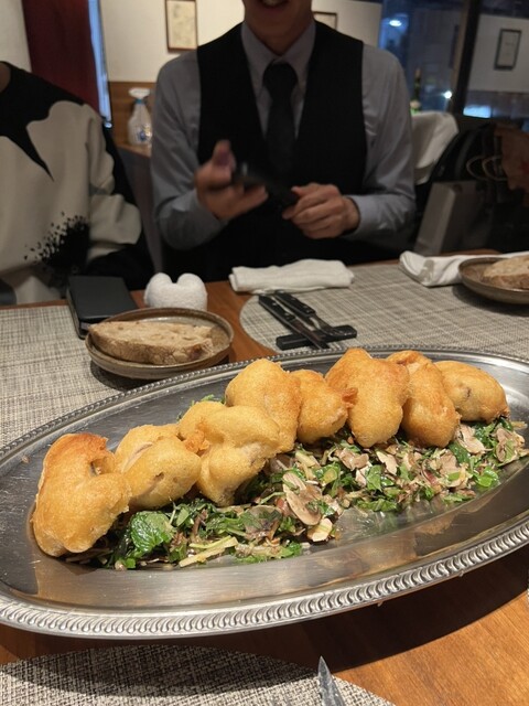 シェフの長谷川北斗氏は、フランスの星付きレストランから老舗ビストロまで、幅広い経歴を持ち、その経験を活かした枠にとらわれない料理を提供しています。特に、シェフ自ら産地に足を運び厳選した三田和牛を使用した料理は絶品です。ふわふわのパルミジャーノがたっぷりの三田牛のカルパッチョや、香ばしく焼き上げられたステーキなど、和牛の持つ旨味を最大限に引き出した一品が楽しめます。