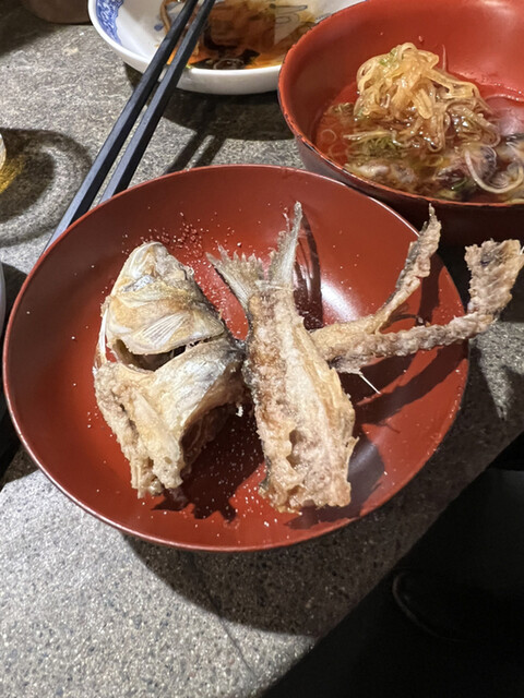 メニュー見て、まずはイワシの刺身。脂乗っててとても美味しい。あと気になったのが、海のレバー。これは蒙古ザメの心臓で、ごま油塩で。レバ刺大好きな私は、とても好み。ましてや、私の注文がラスト一品だったので、なんかすごく徳した気分^_^