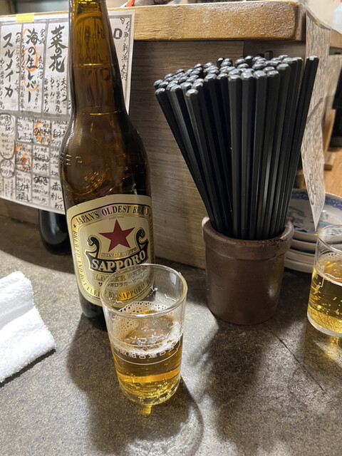 あとは赤ナマコのポン酢。飲み物はここでは赤星。
