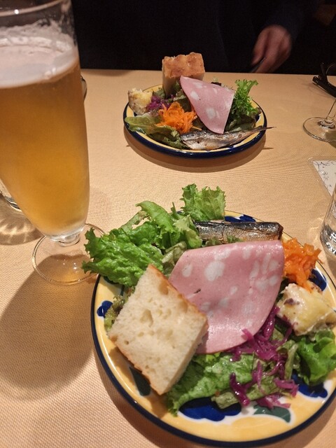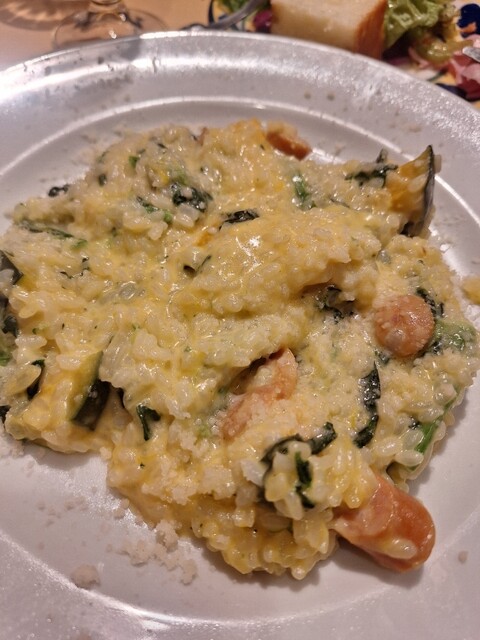 保存していたお店の中から近くて予約出来るお店を検索して入ったのですが、かなり良くて、リピート確定のお店です。ランチBコース(2,530円)でサラダ、メイン(パスタ、リゾット、肉料理etc)、ドリンクのセット。私はカボチャとリーズのリゾット、相方はポルチーニ茸と熟成生ハムのクリームパスタを。