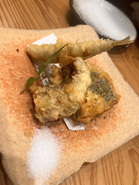 たけのこは先端部分を……柔らかくて下味の加減も凄く良かったです。あとタコの柔らか煮を天ぷらにしてくれていました。衣に味が染みていてカリッと香ばしく美味しかったです