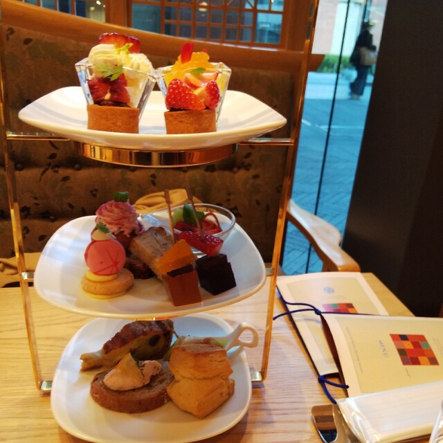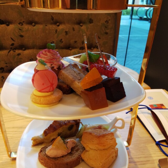 最下段はセイボリー。 中段は 焼き菓子 果物 パートドフリュイ。