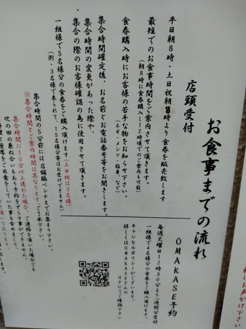 ラーメン屋にしては珍しい一斉スタート方式でして、店内の準備が整いしだい予約客が一斉に店内へ。