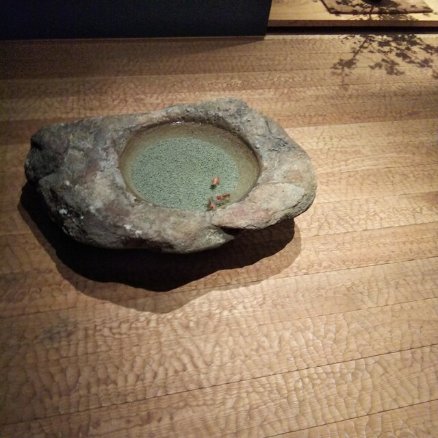 お出迎え役の金魚。石川大将からの寄贈品だとか。鉢を運んだのが蓮の三科さん。