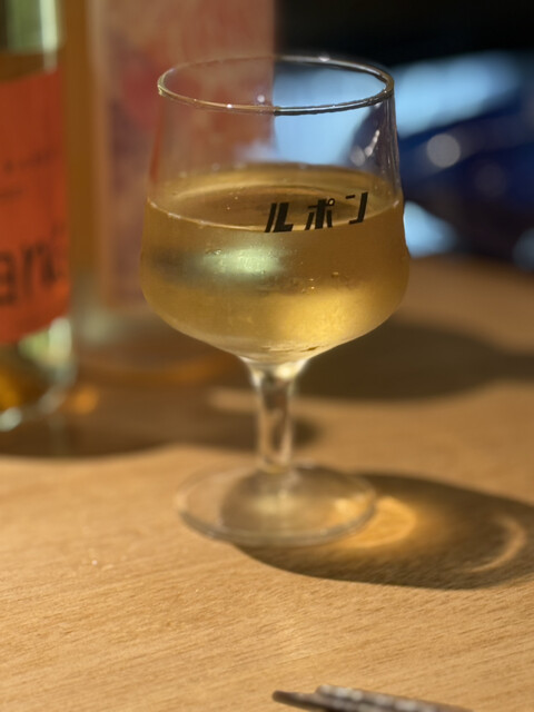 カウンターに並ぶワインやレモンサワーの瓶がずらりと並んでいて、最初の一杯から気分が上がります。
