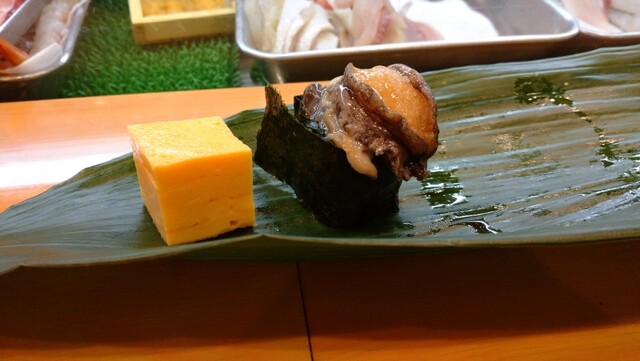 セットチョイスは二つなので、もう一つは安定の貝汁で、単品では特選についている活きアワビのおどりにぎりを追加でオーダーします。