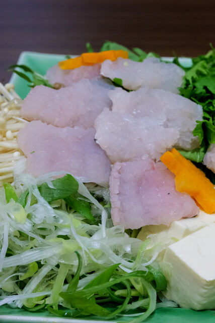 鱧をすきしゃぶで野菜も絡めて食べると美味しいですね!