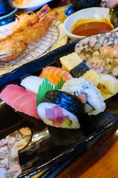 エビフライとお寿司が一緒に食べられる