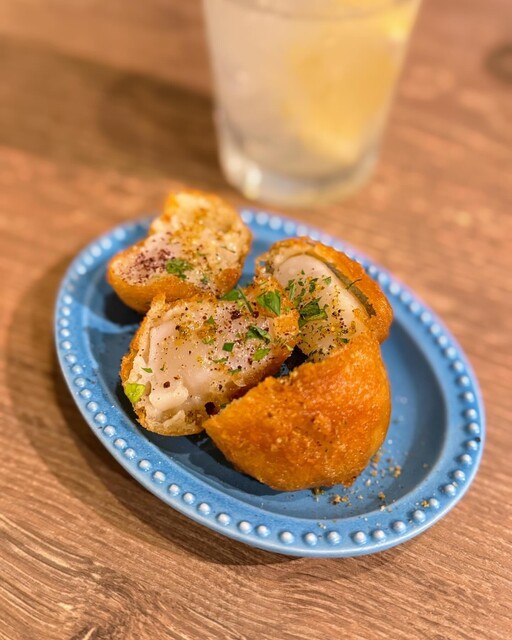 帆立のレアフリットは、サクッと揚がった衣の中にプリっとしたホタテが絶妙な食感で、口の中でとろける美味しさでした