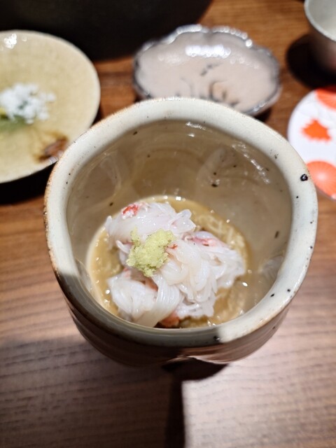 カニ、寒ブリ、南蛮エビなどが珠玉のコースをいただきました。素材がとても素晴らしいことは言うまでもなく、その魅力を最大限に引き出す仕事、新しいカタチでの出し方など、ひたすらに唸らされました。