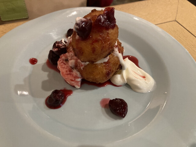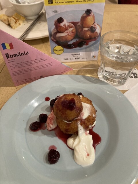 台湾メニューはご飯の中に揚げパンが入っているのは驚きましたが、中に甘めの具材も入っていて一つでお腹が満たされそうな量です。クレープ状のものはチーズが入っていてあと引く美味しさでした。お粥は元々好きなのでホッとできる味で美味しかったです。ルーマニアのパパナシは本来2つで提供されるものらしいのですがこちらでは1つでも可能ということでデザートにいただきました。ドーナツの部類なのかなと思いますが生地がもっちりふわふわでベリーのソースととても合いました。常設でこれが食べられるお店があったらいいなというくらい好みの料理でした。