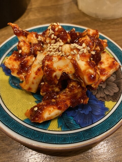 この日は、お通しのからあげくんから始まり、旨塩手羽、鶏と野菜の炭焼き、生キムチ(カリフラワー)、里芋のからあげなどをいただきました。
