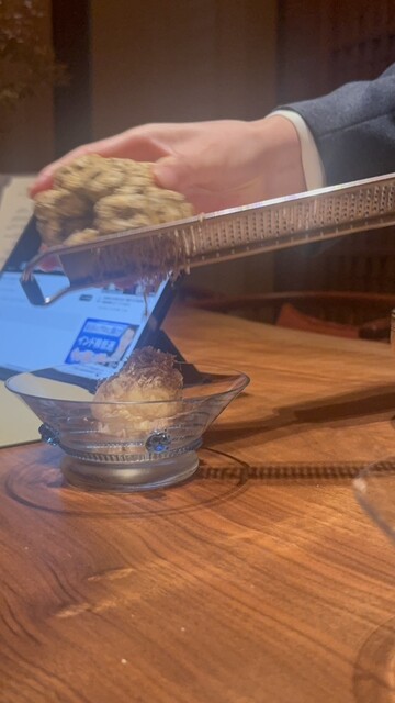 目の前で仕上げられる北京ダックの香ばしさ、これでもかというほど香る白トリュフの深み。