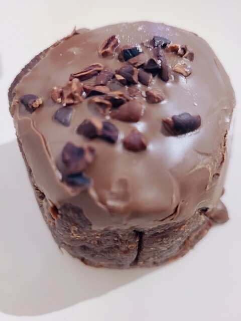 生地はもちもち!!チョコレートの生地ですがそんなに甘味はなかったです。チョコ生地の上にチョコレートがかかっていてナッツが散りばめられていました。