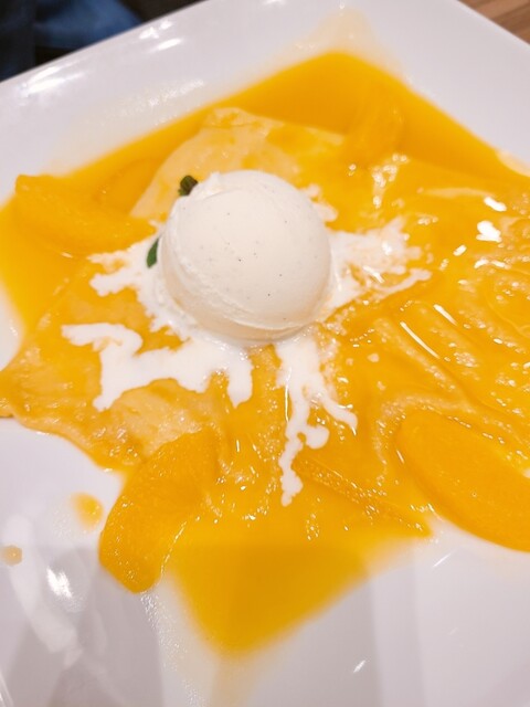 こちらはクレープ生地が薄いから物足りないかなと最初は思いましたが全然そんなことなく、クレープ生地にオレンジソースを絡め、バニラアイスをのせて食べると口の中は薔薇色でした✨️これもフレンチトーストに負けず劣らず美味しかったです。